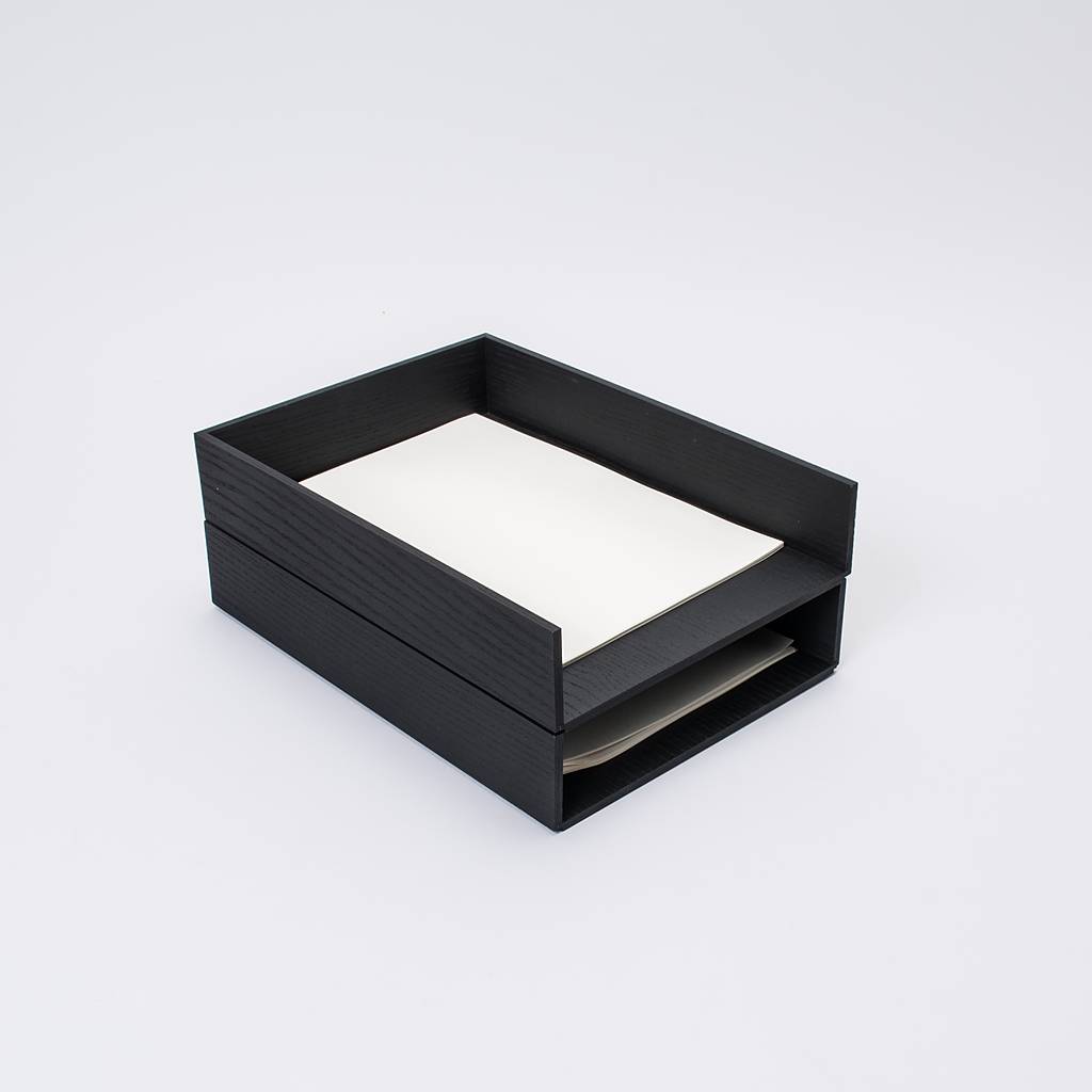 Keep papers, notebooks, and magazines in order on your desk or bookshelf. The black-stained wooden letter tray is a simple element on any de...