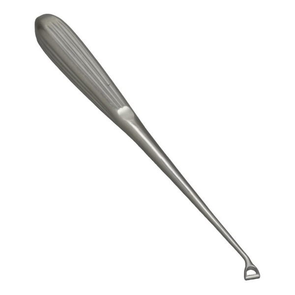 A surgical instrument designed for scraping or debriding biological tissue or debris in a biopsy, excision, or cleaning procedure.