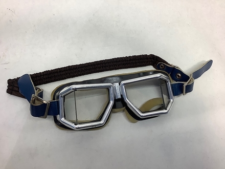 German TROPHY motorcycle protective glasses with aluminum frames. Elastic leather head strap. Anti sweat vents on top and bottom.