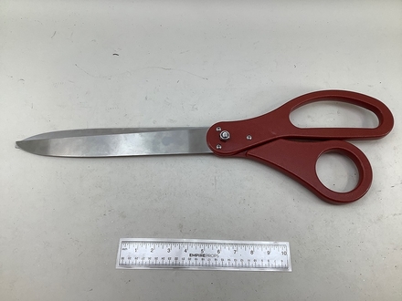 25.5" Ribbon Cutting Scissors. Grand Opening Metal Scissors with Red handles. 25.5 inches long and 8" wide (closed). These Giant Ceremony Sc...